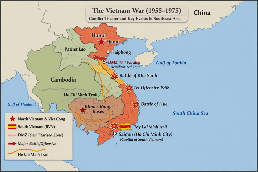 The war’s physical legacies remain measurable. UNDP reporting cites a Government of Vietnam estimate that about 18% of the country’s land area remains contaminated by explosive remnants of war. Remediation of dioxin “hotspots” has continued through bilateral programs, including major work at Bien Hoa. In memory and policy, the Vietnam War endures as a conflict that terminated not in a single clean settlement, but through a negotiated exit for one principal external actor and a final military outcome two years later—followed by decades of regional war, national reform, and ongoing efforts to manage human and environmental aftermath.